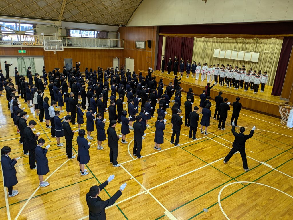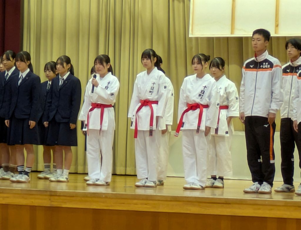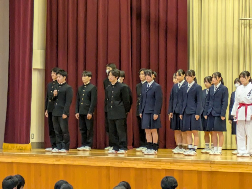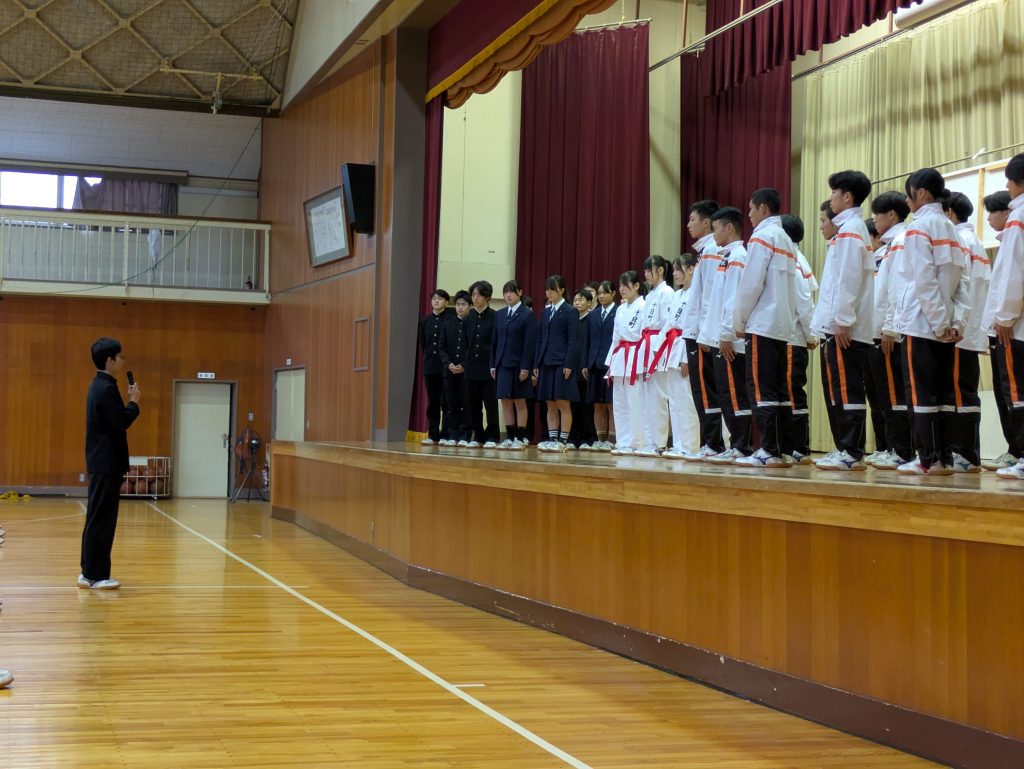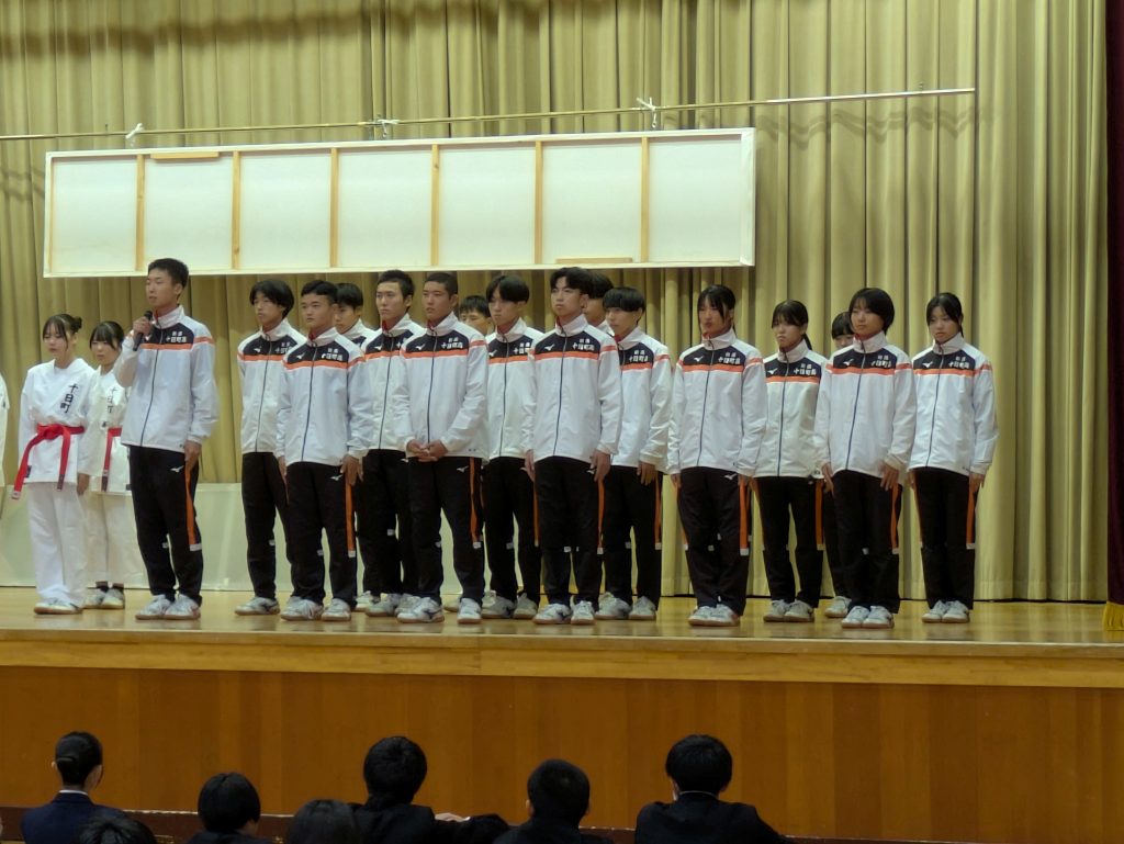 スキー部と、北信越大会出場の空手道部、陸上競技部(駅伝)壮行式が行なわれました