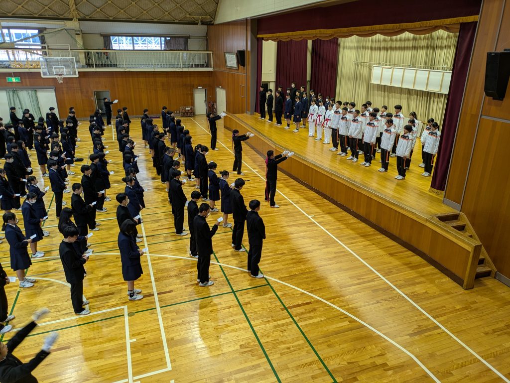 11月5日(水)、いよいよシーズンを迎えるスキー部と、北信越大会出場を決めた空手道部、陸上競技部(駅伝)の壮行式が行われました。教頭と生徒会長からの激励のことばが述べられた後、選手たちの大会にかける意気込みが力強く述べられました。生徒、教職員一同で応援しています。頑張ってください。