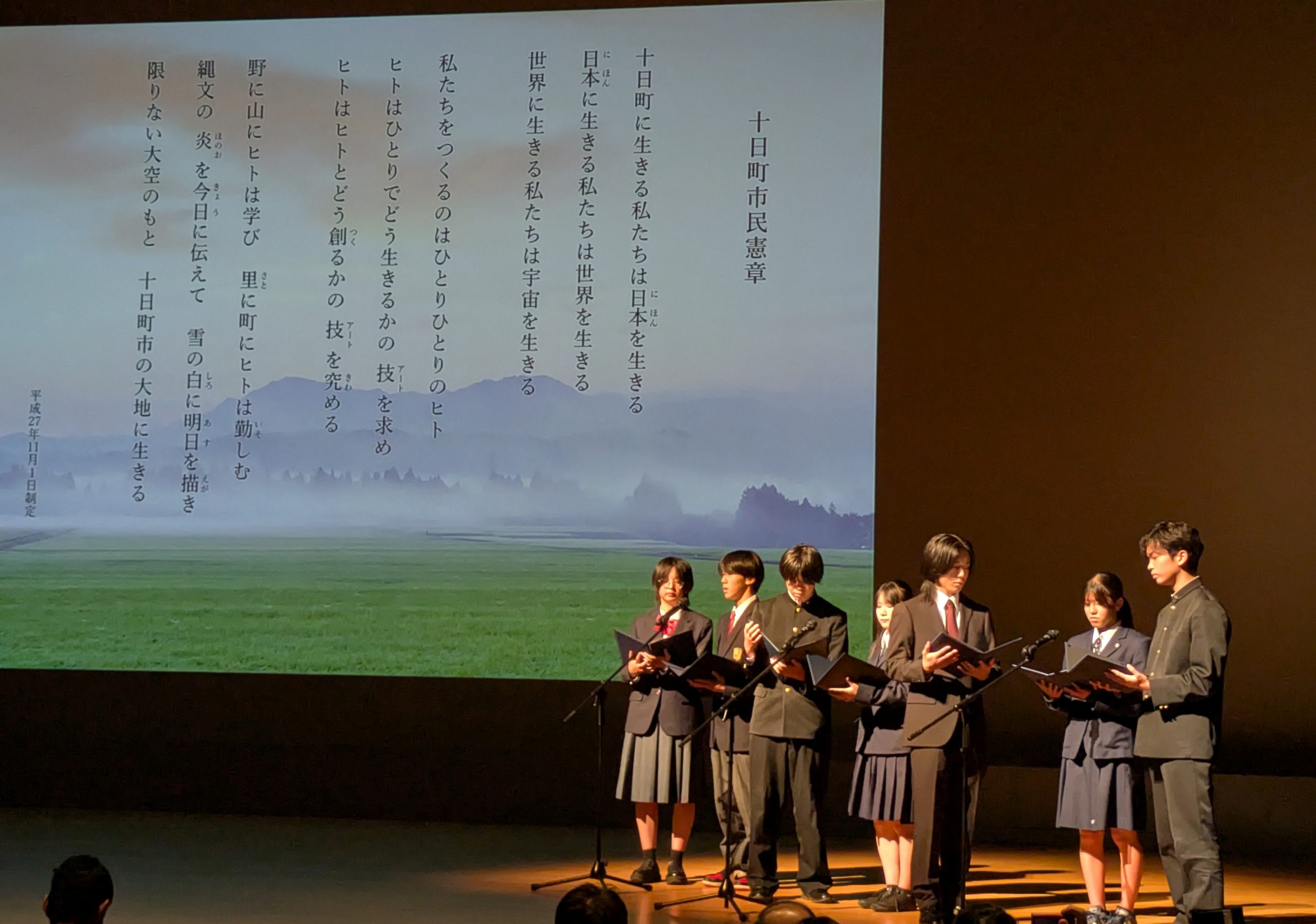 十日町市『新市誕生20周年記念式典』で十日町高校生が市民憲章を朗読しました